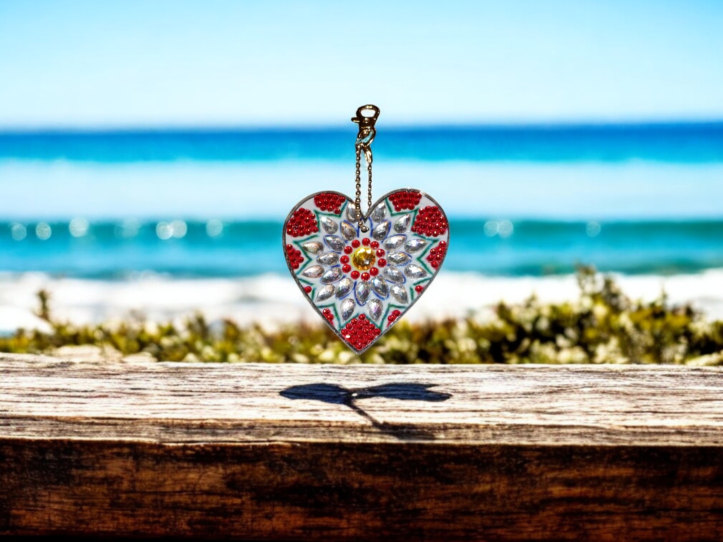 Large Unique Red & White Heart Keychain