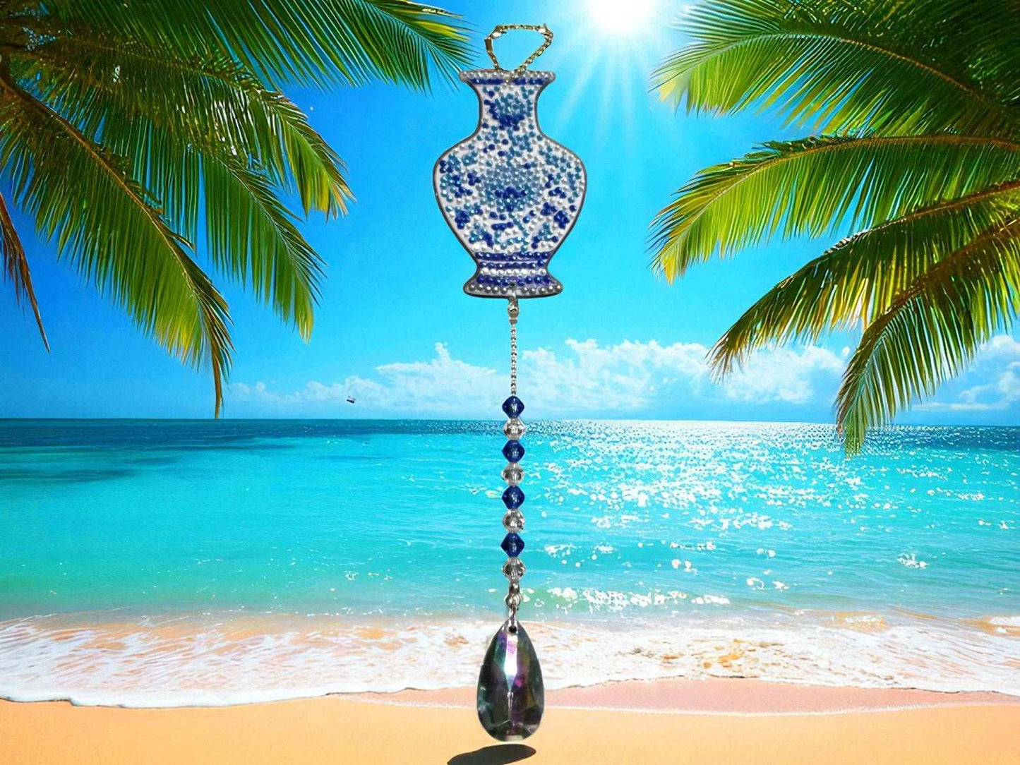 Round Blue Antique Style Pot Sun/Wind Catcher