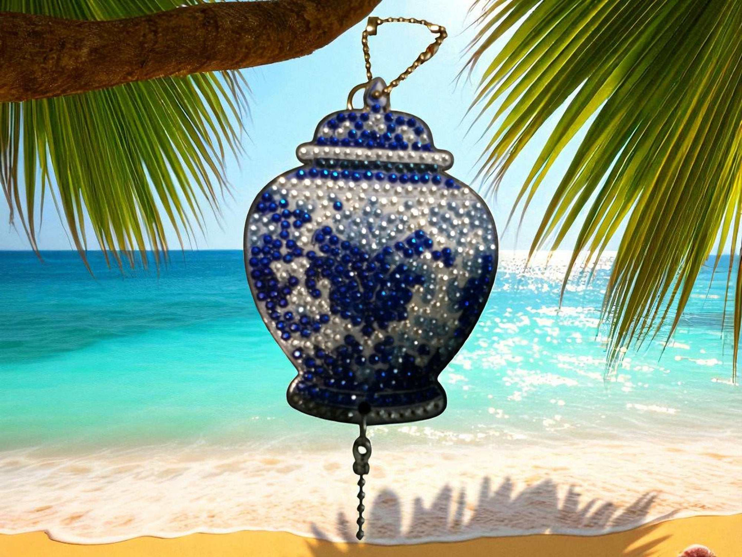 Antique Style Blue Wide Pot w/Cover Sun/Wind Catcher
