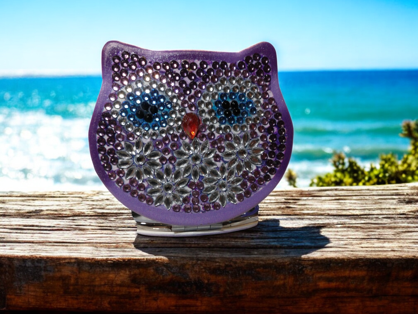 White and red Santa Clause keychain hanging from a wooden surface with a blurred ocean background
